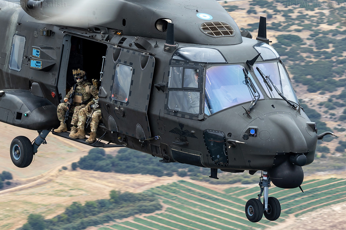 Once the Kiowa pulled away, a Hellenic Naval Aviation Command Sikorsky S-70B Aegean Hawk joined up. We completed a few circuits with the Aegean Hawk before it pulled away and the final helicopter joined up, an NHIndustries NH-90-SOH.